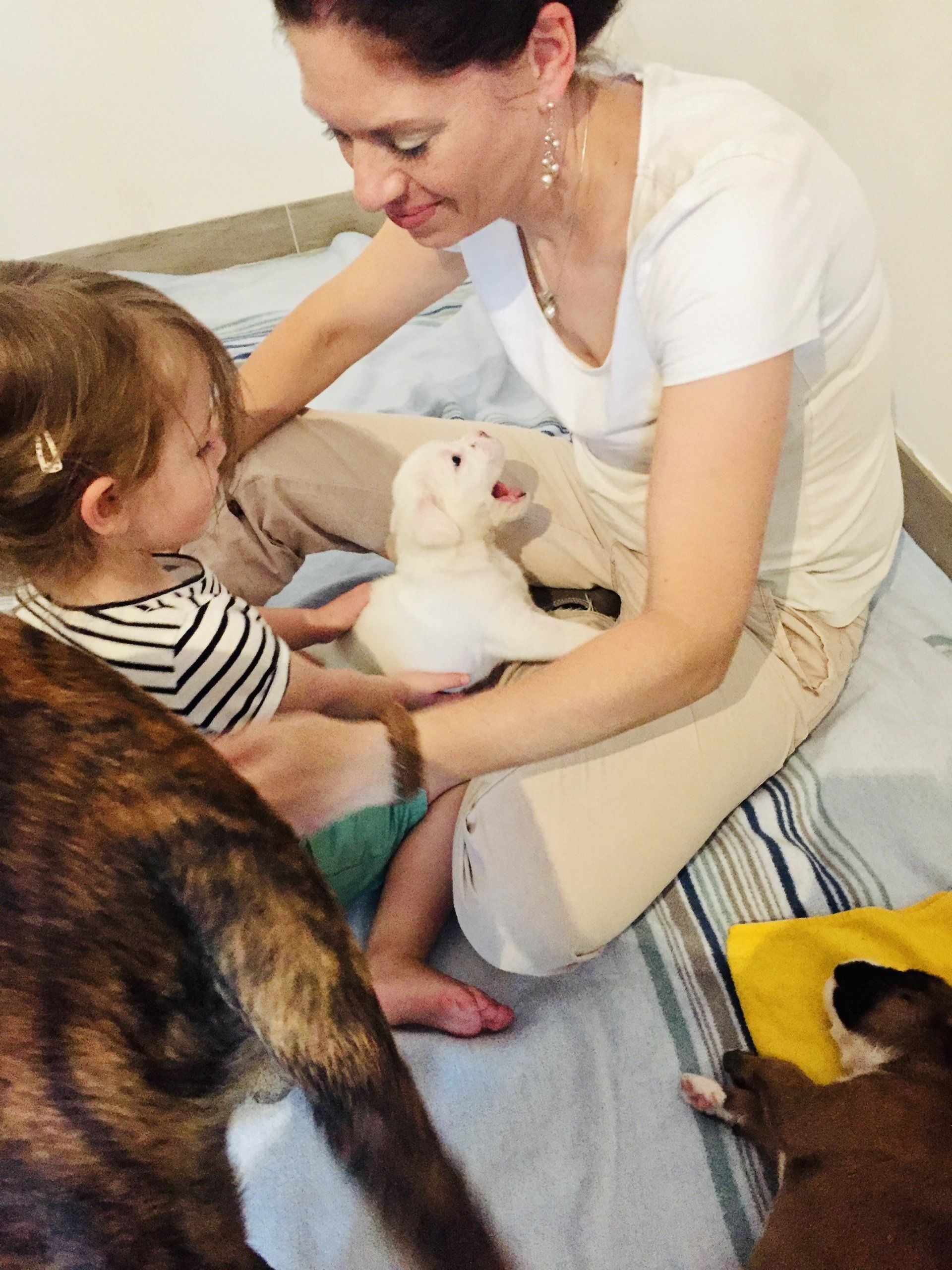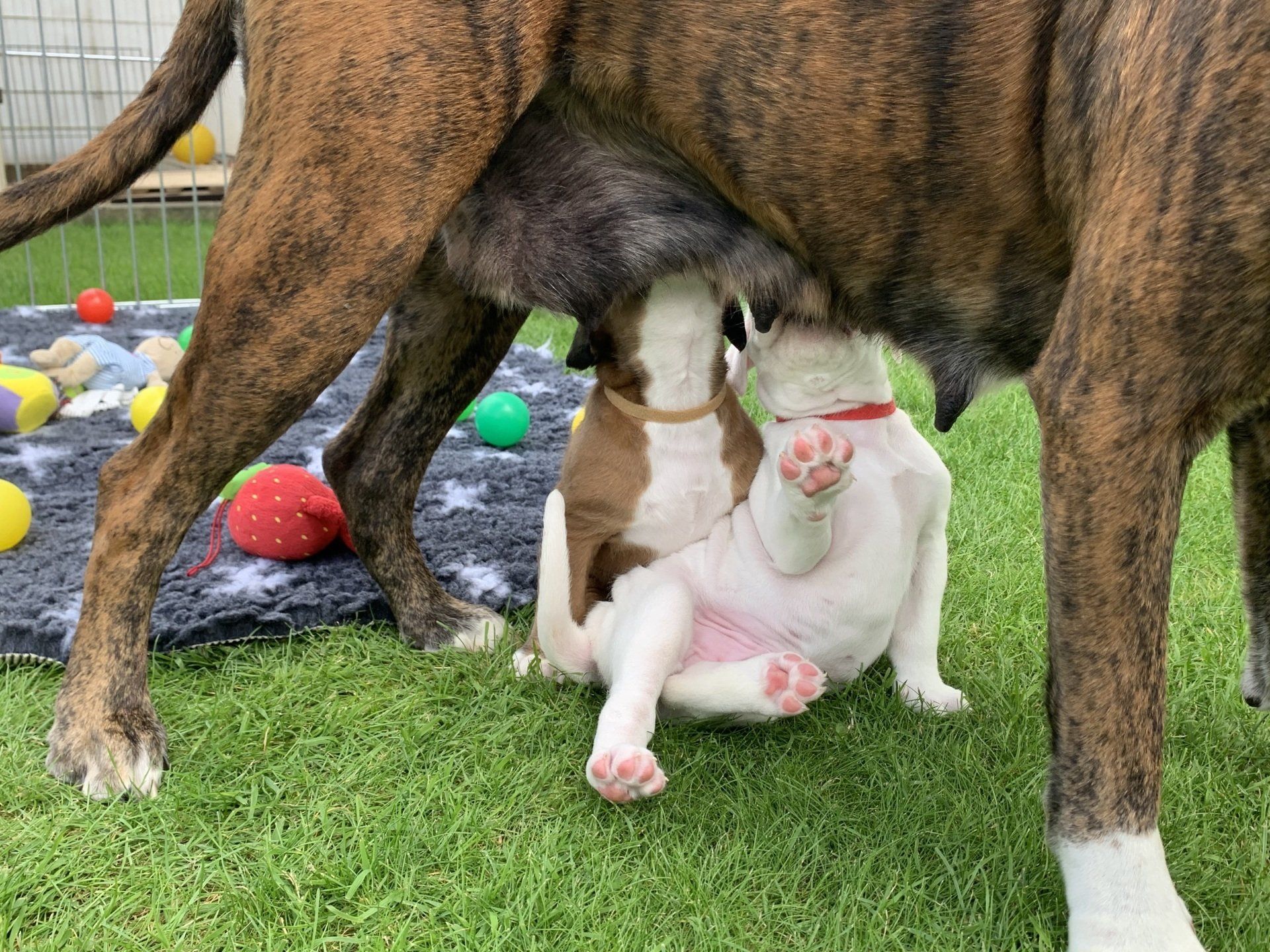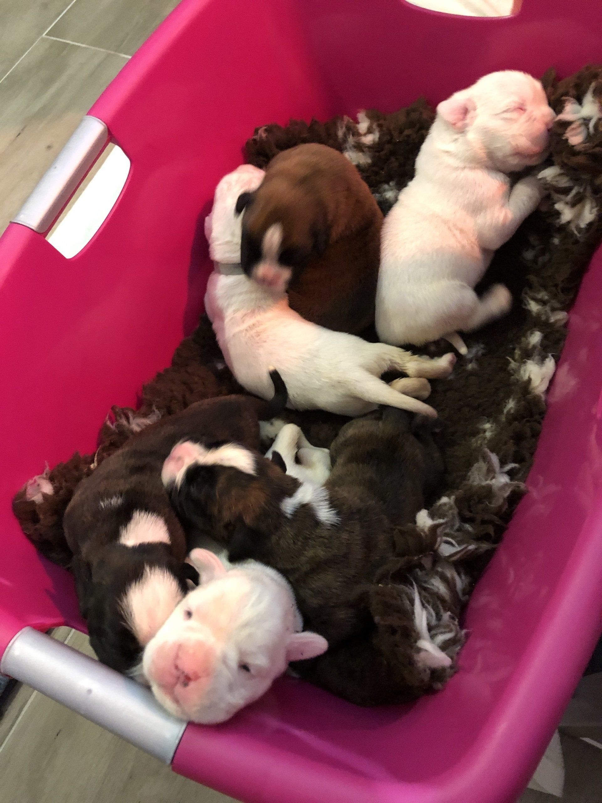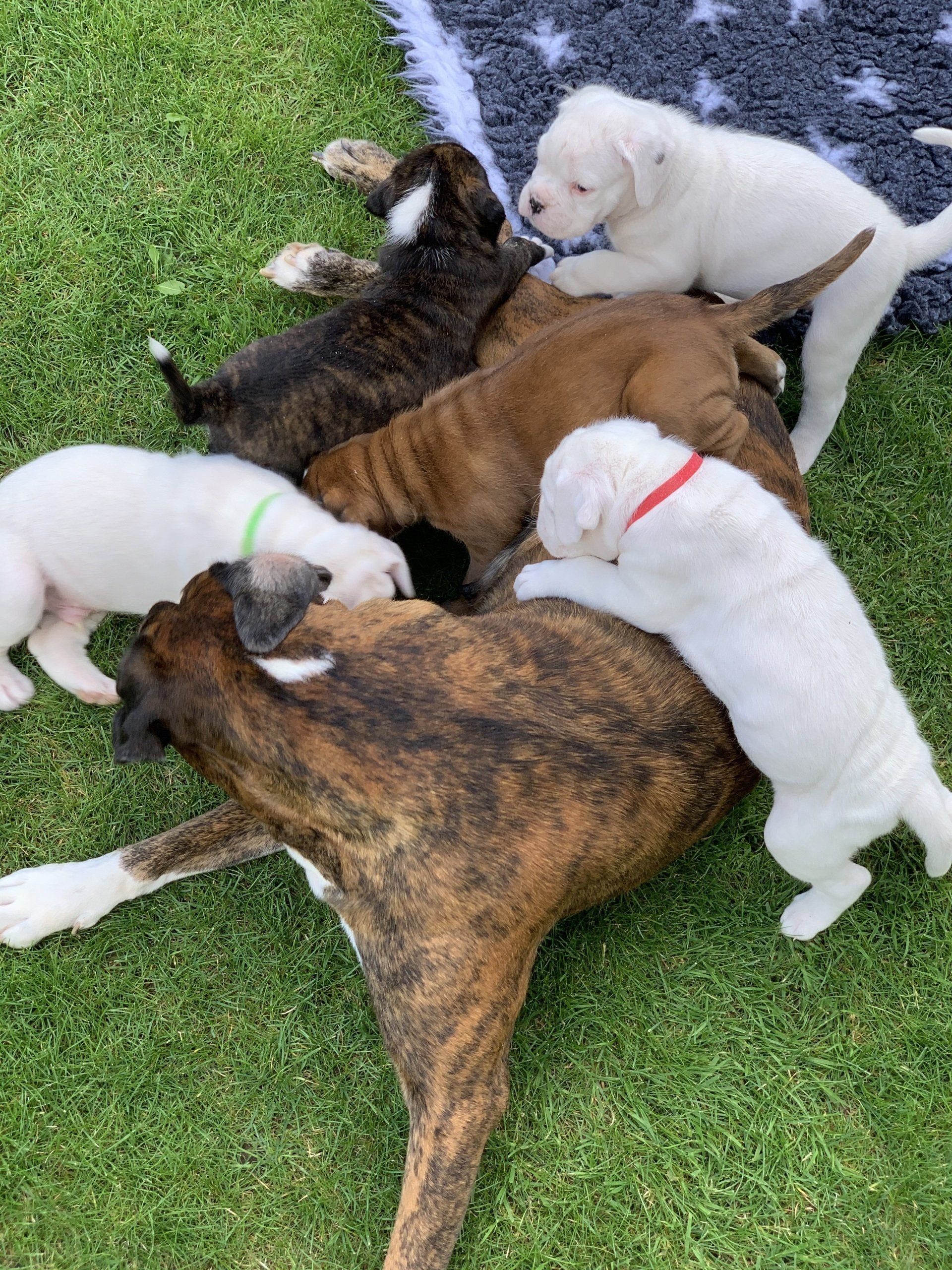 Nightingale hat 6 gesunde Welpen in der Nacht vom Dienstag auf Mittwoch geboren. Die 6 kleinen Racker haben sich in den ersten 3 Tagen schon prächtig entwickelt. Wir freuen uns über 3 Mädchen (gelb, gestromt und weiß) und 3 Rüden (2 weiße und einen dunkelgestromten).