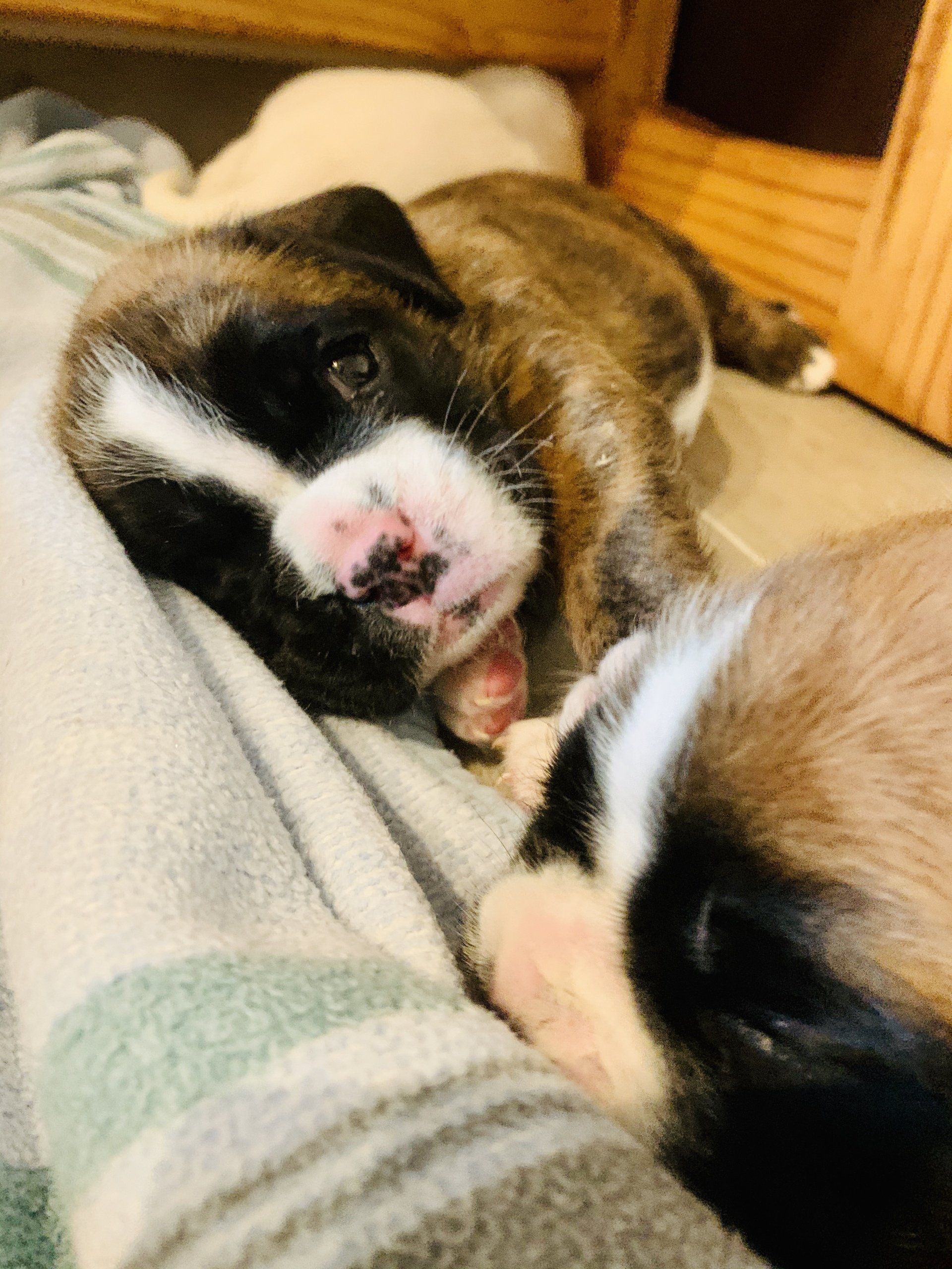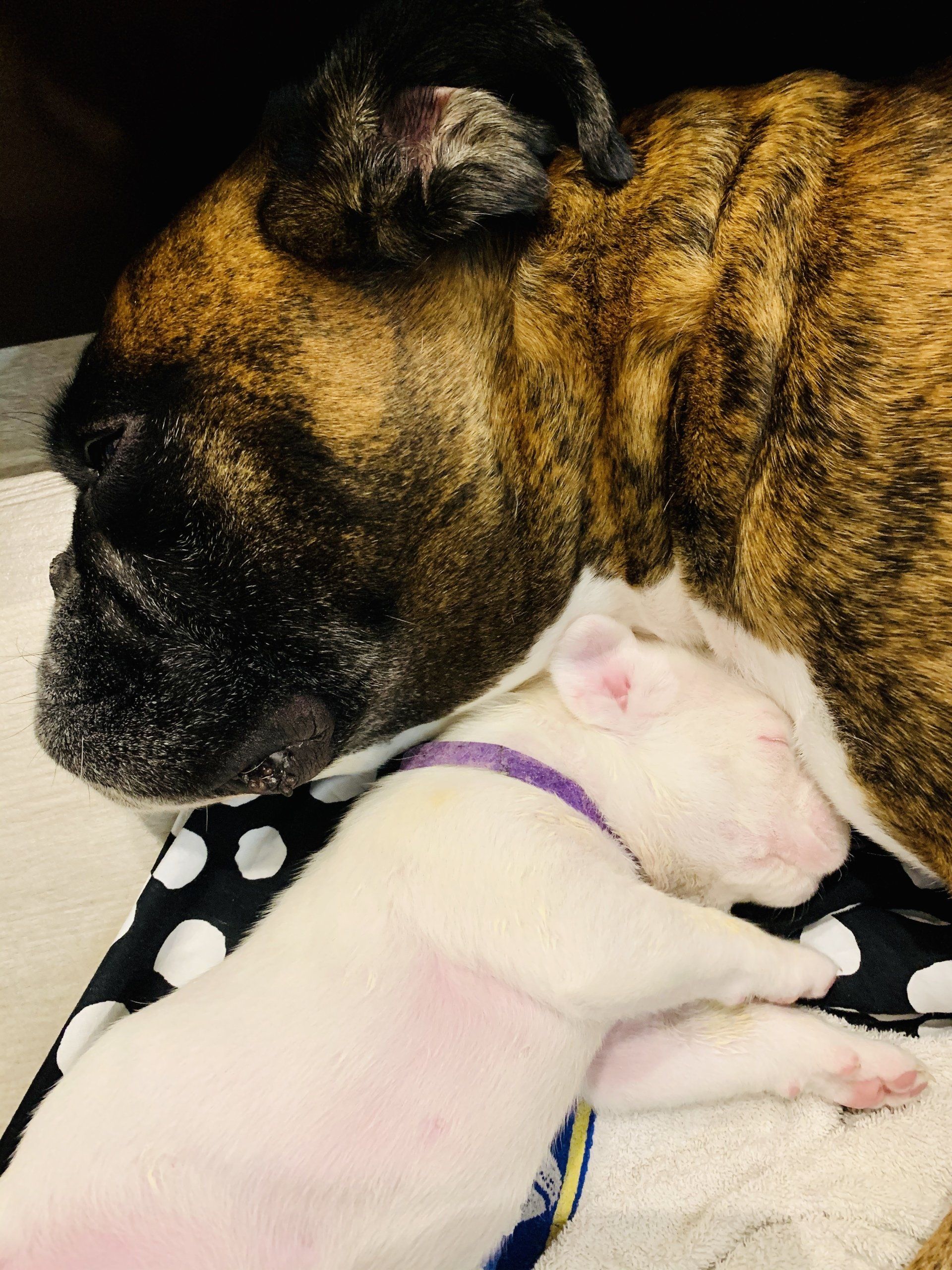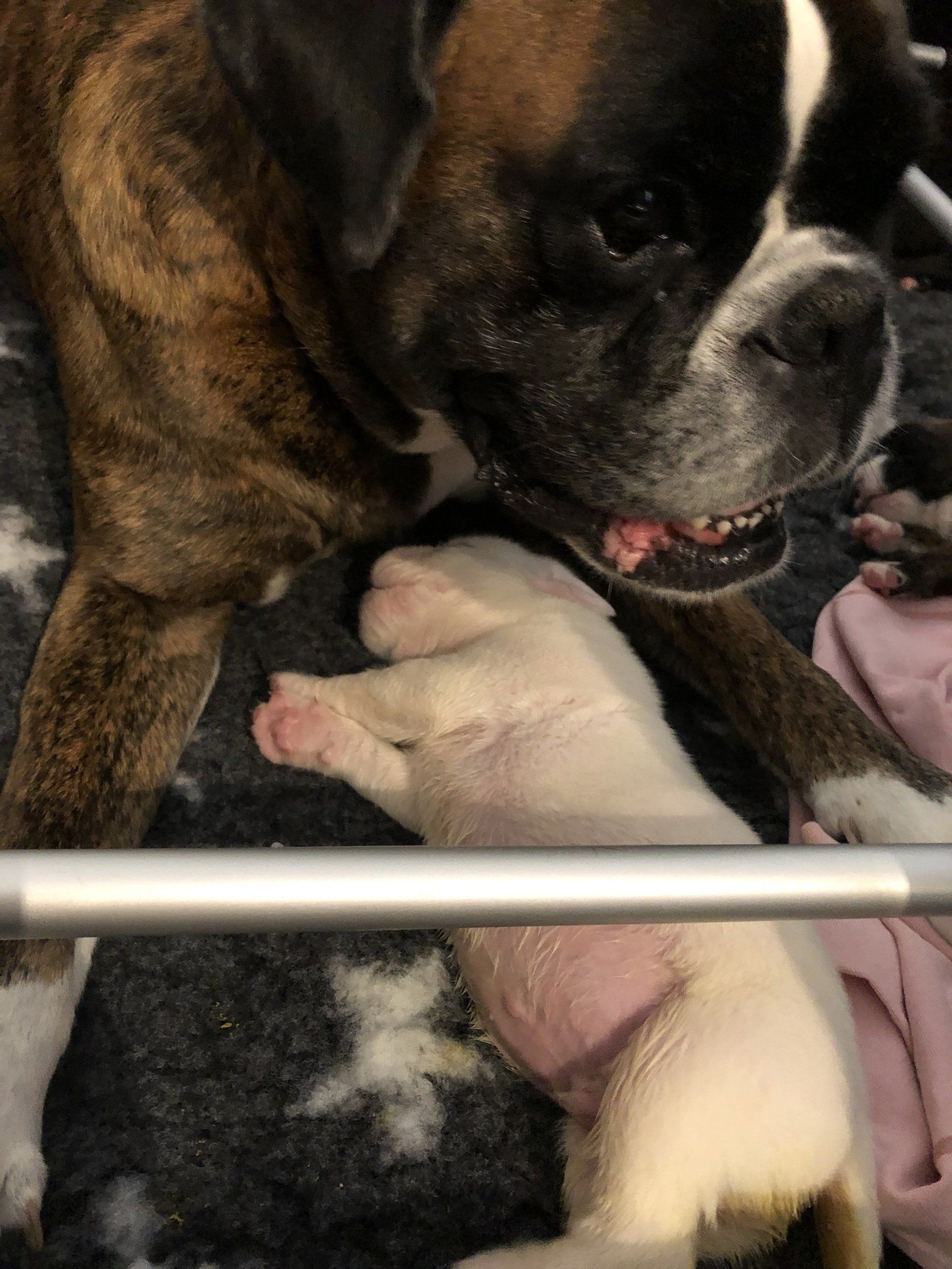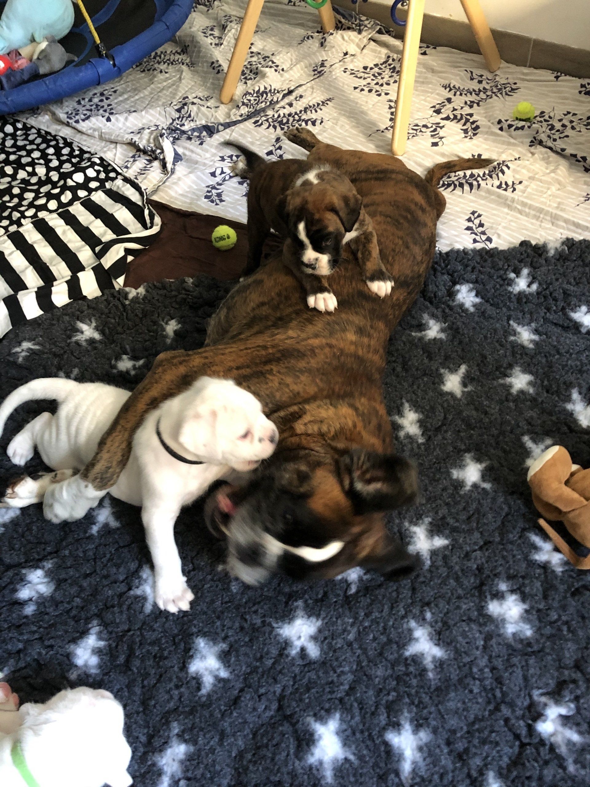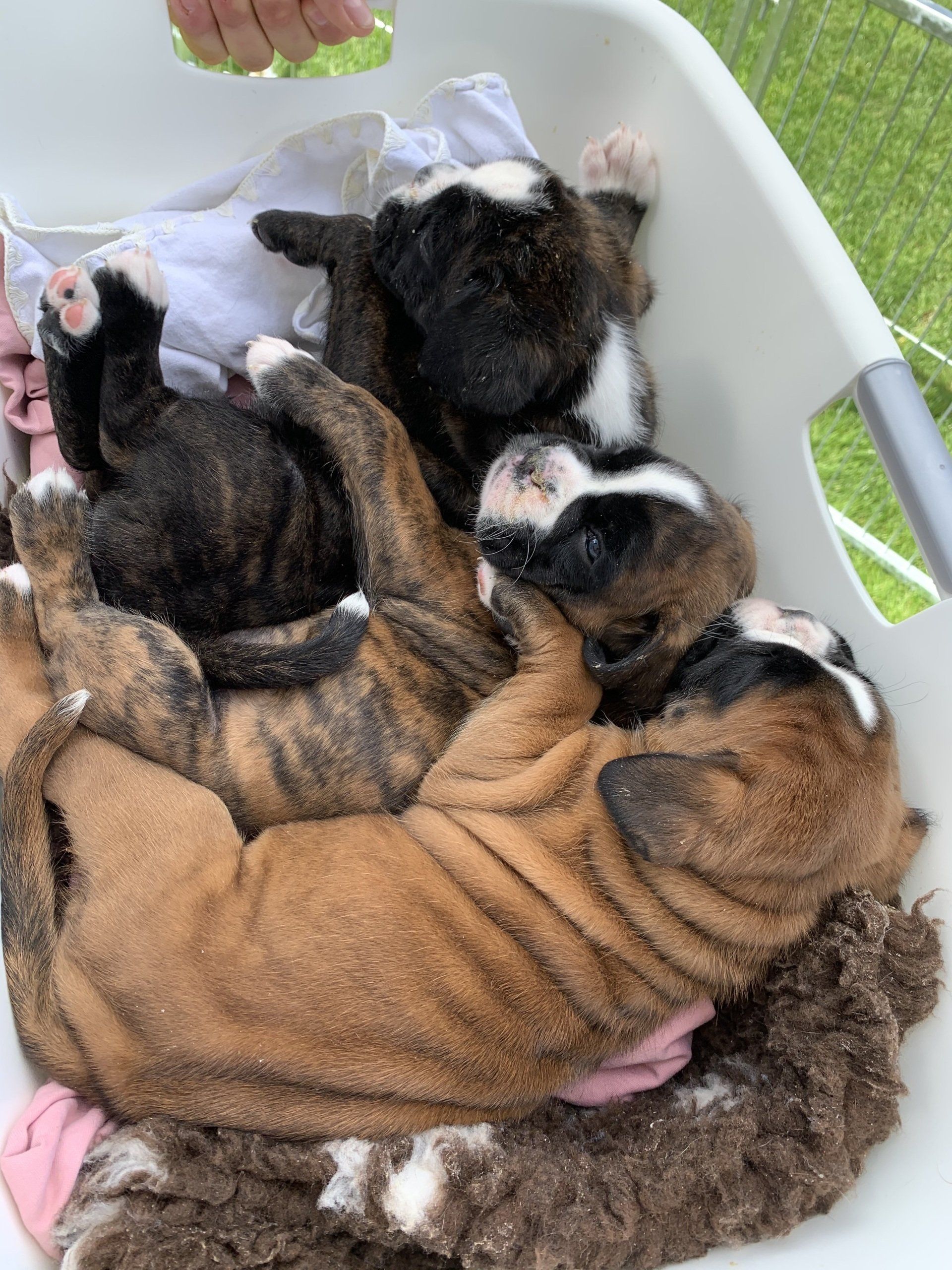 Nightingale hat 6 gesunde Welpen in der Nacht vom Dienstag auf Mittwoch geboren. Die 6 kleinen Racker haben sich in den ersten 3 Tagen schon prächtig entwickelt. Wir freuen uns über 3 Mädchen (gelb, gestromt und weiß) und 3 Rüden (2 weiße und einen dunkelgestromten).